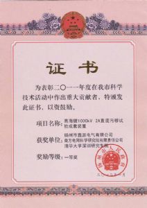 一種新型試驗電源設備上用倍壓塔-發(fā)明專利證書